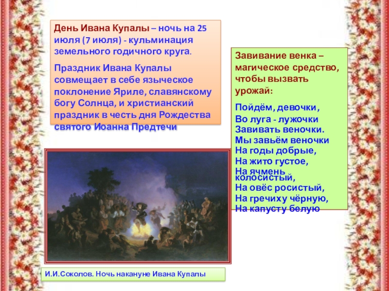 Слайд 25День Ивана Купалы – ночь на 25 июля (7 июля) -