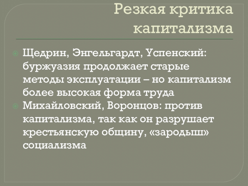 Щедрин, Энгельгардт, Успенский: буржуазия продолжает старые методы эксплуатации –