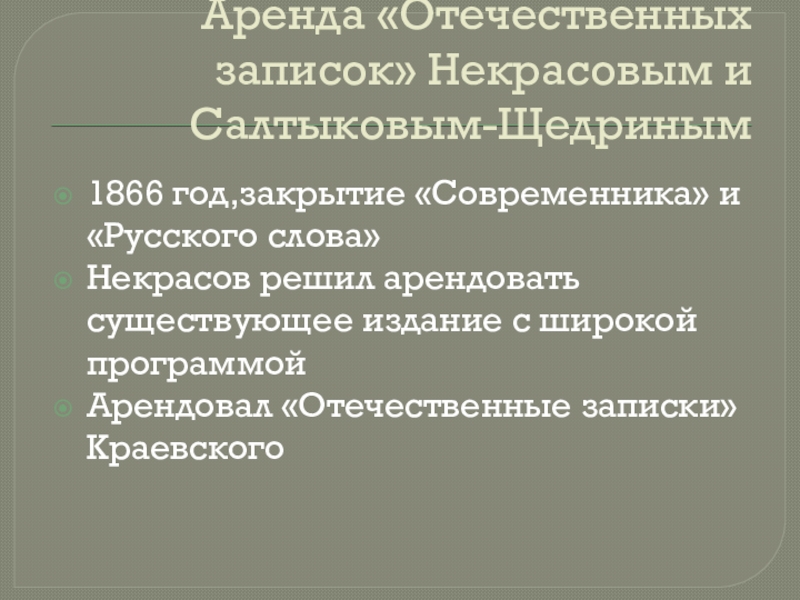 Слайд 2Аренда «Отечественных записок» Некрасовым и Салтыковым-Щедриным