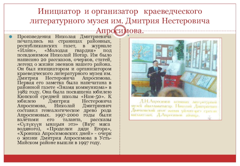 В 2005-м году его легенда – быль была напечатана в республиканском журнале «Илин»,