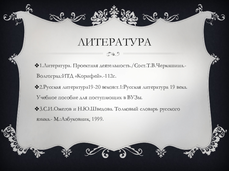 1.Литература. Проектная деятельность./Сост.Т.В.Черкашина.-Волгоград:ИТД «Корифей».-112с.