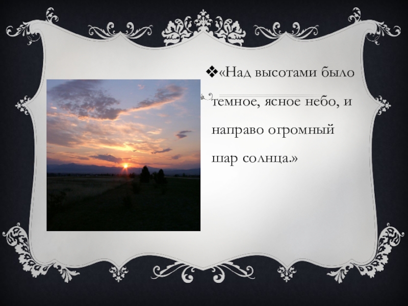 Слайд 26«Над высотами было темное, ясное небо, и направо огромный шар солнца.»