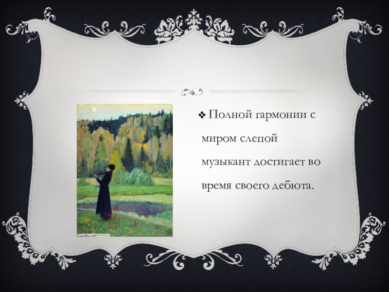 Слайд 17 Полной гармонии с миром слепой музыкант достигает во время своего