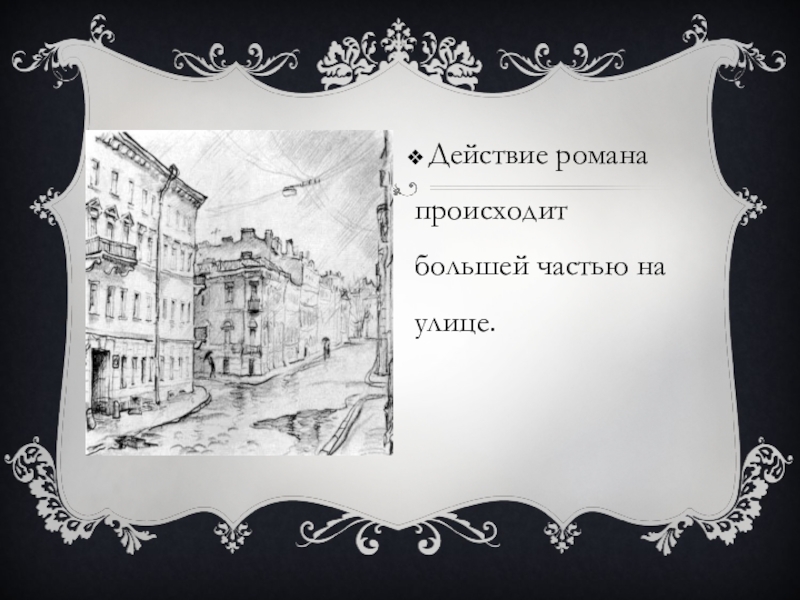 на другой день его чахоточная и полубезумная вдова на улице истекает кровью; на улице застрелился Свидригайлов; на Сенной площади Раскольников пытается всенародно покаяться. Эти уличные сцены создают фон, на котором развертывается трагическая жизнь Мармеладова, Сонечки, Раскольникова…