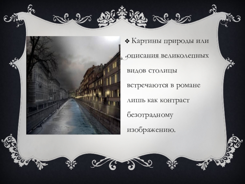 Слайд 21 Картины природы или описания великолепных видов столицы встречаются в романе