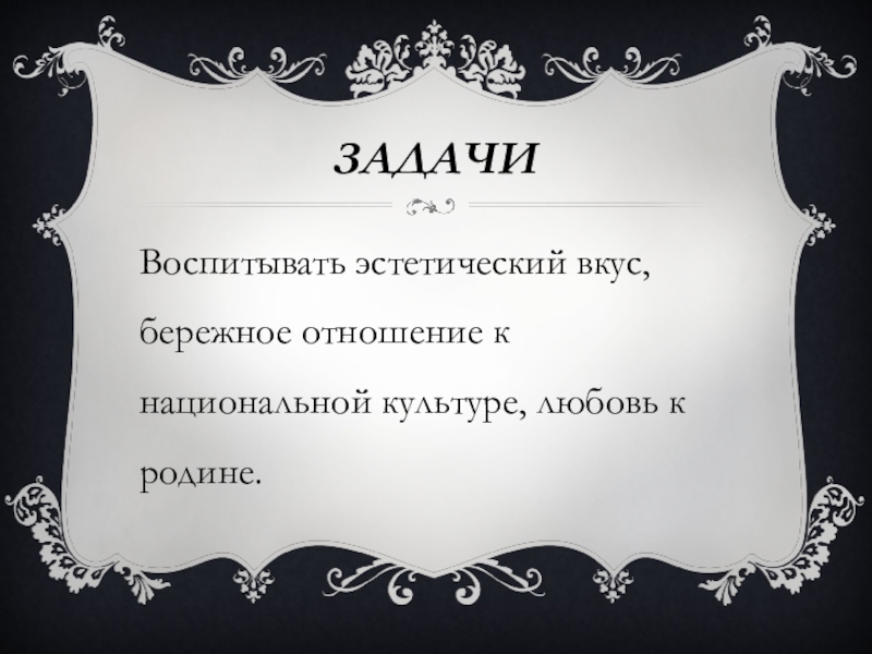 Воспитывать эстетический вкус, бережное отношение к национальной культуре, любовь к родине.