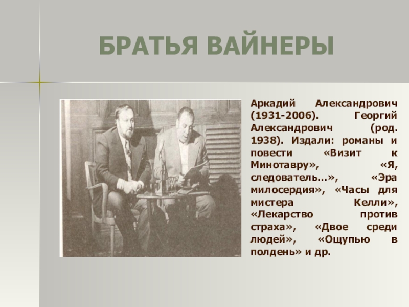 Аркадий Александрович (1931-2006). Георгий Александрович (род. 1938). Издали: романы и