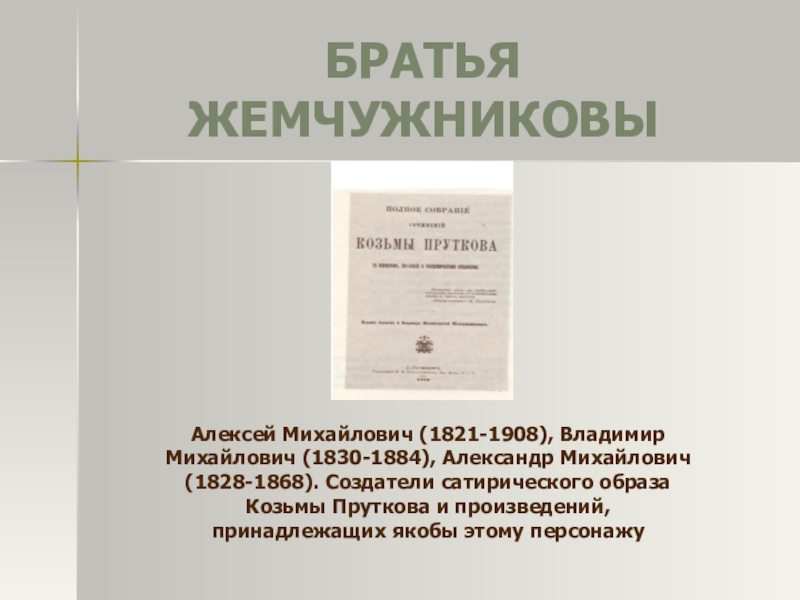Слайд 6БРАТЬЯ ЖЕМЧУЖНИКОВЫ