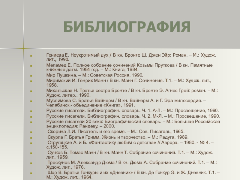 Русские писатели. Библиографич. словарь. Ч. 2. М-Я. – М.: Просвещение, 1990.