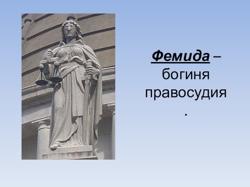 Слайд 13Фемида – богиня правосудия.
