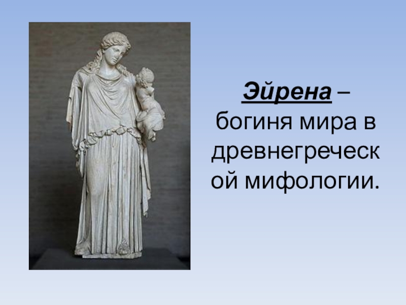 Слайд 9Эйрена – богиня мира в древнегреческой мифологии.