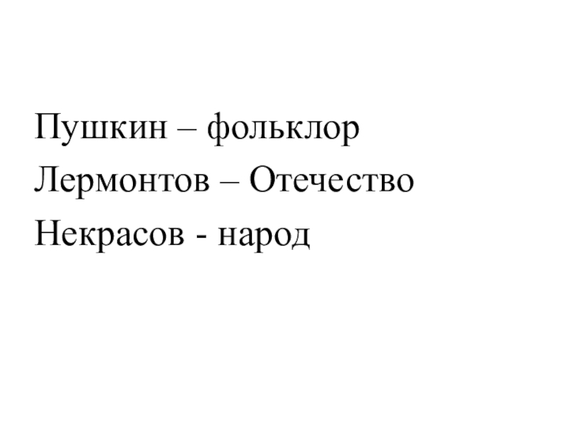 Пушкин – фольклорЛермонтов – ОтечествоНекрасов - народ