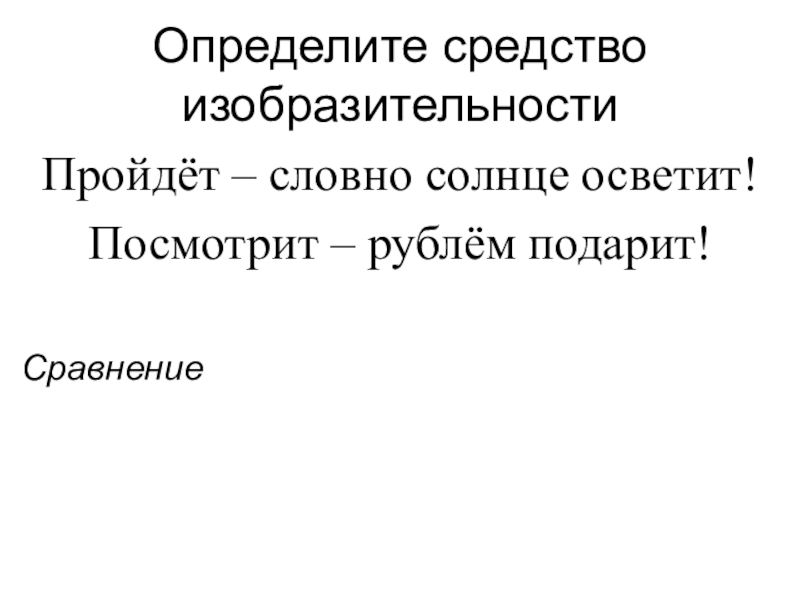 Определите средство изобразительностиПройдёт – словно солнце осветит!Посмотрит – рублём подарит!Сравнение