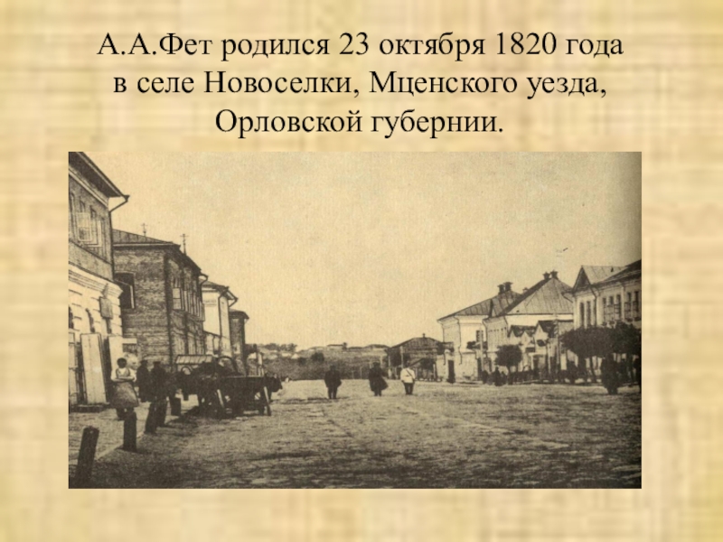 Слайд 3А.А.Фет родился 23 октября 1820 года в селе Новоселки, Мценского уезда,