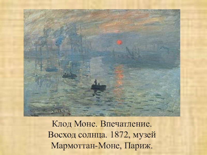 Слайд 8Клод Моне. Впечатление. Восход солнца. 1872, музей Мармоттан-Моне, Париж.