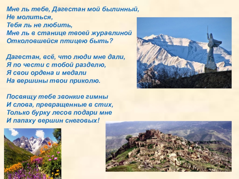 Слайд 10Мне ль тебе, Дагестан мой былинный,