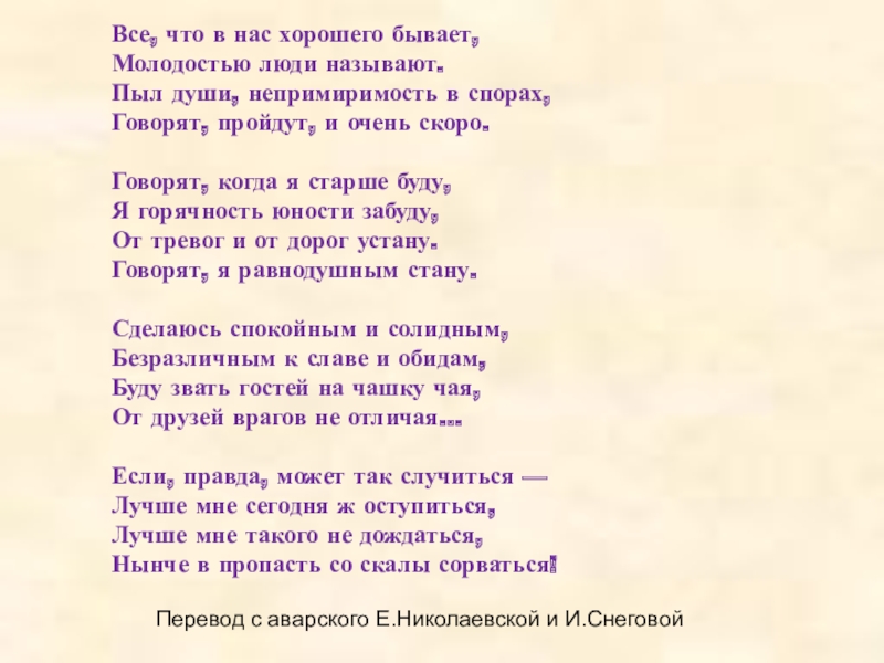 Перевод с аварского Е.Николаевской и И.Снеговой