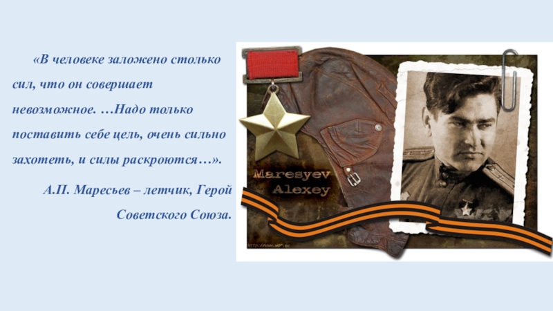 А.П. Маресьев – летчик, Герой Советского Союза.