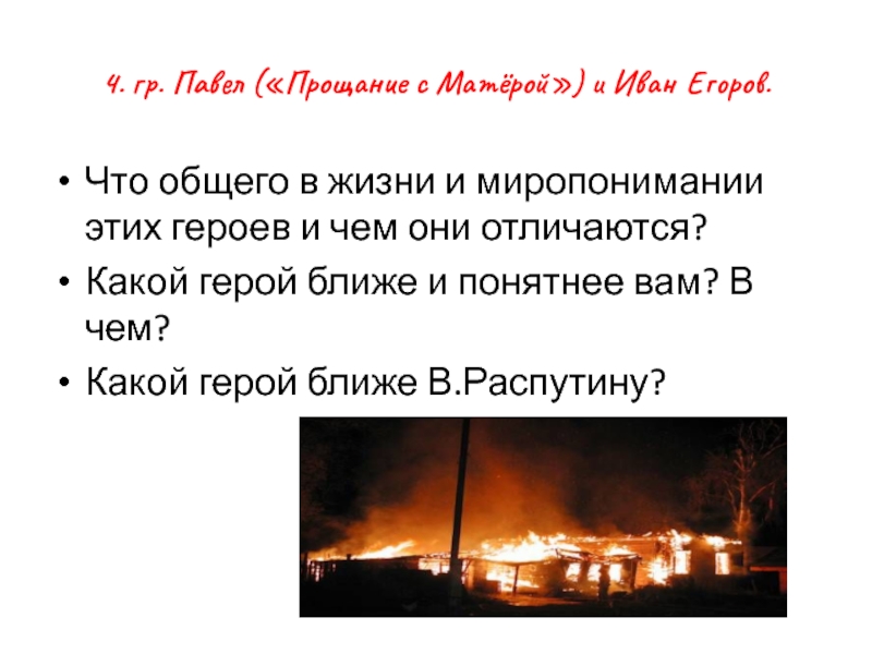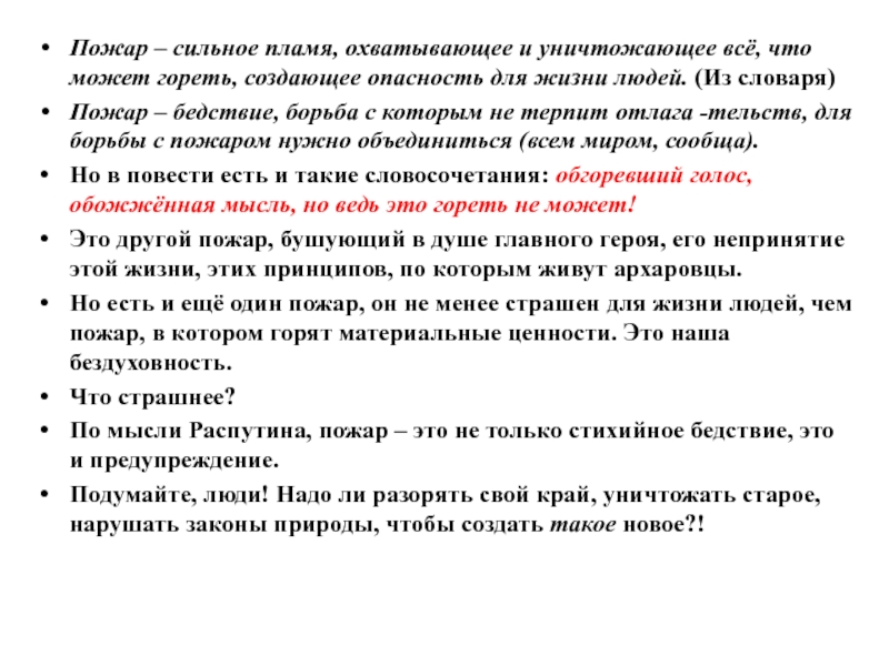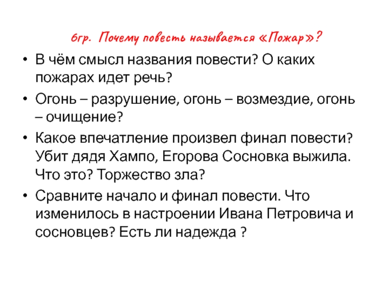 Слайд 196гр. Почему повесть называется «Пожар»?