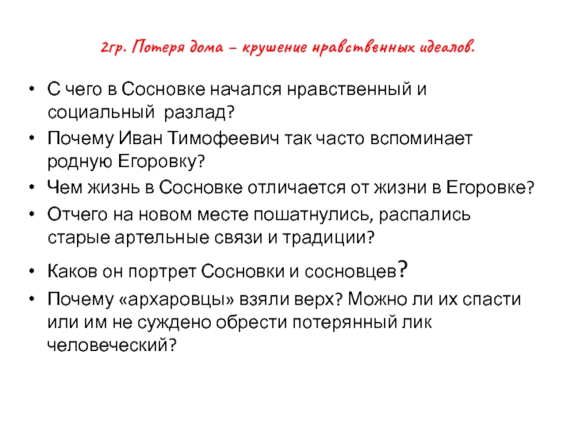 Слайд 102гр. Потеря дома – крушение нравственных идеалов.