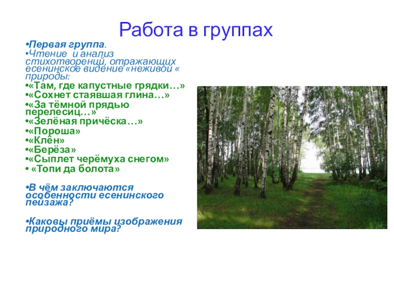 Чтение и анализ стихотворений, отражающих есенинское видение «неживой