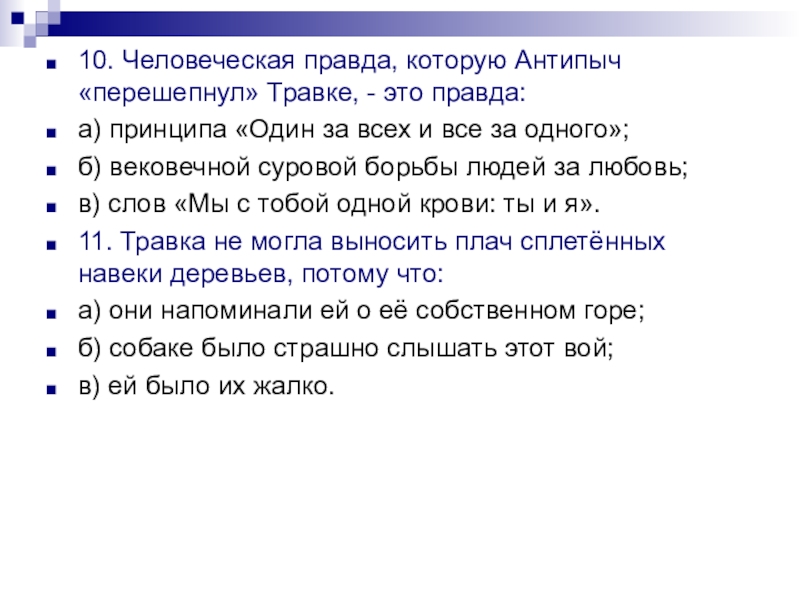 Слайд 1710. Человеческая правда, которую Антипыч «перешепнул» Травке, - это правда: