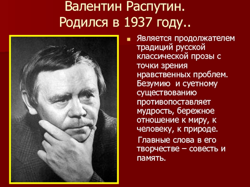 точки зрения нравственных проблем. Безумию и суетному существованию противопоставляет мудрость, бережное отношение к миру, к человеку, к природе.