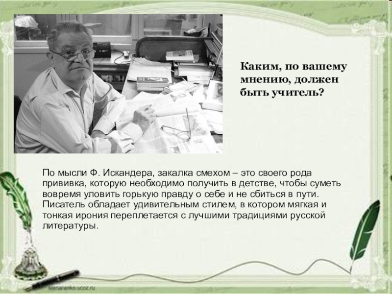 По мысли Ф. Искандера, закалка смехом – это своего рода прививка,
