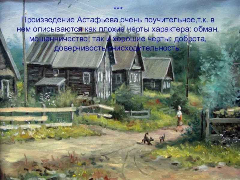 Произведение Астафьева очень поучительное,т.к. в нем описываются как плохие черты характера: