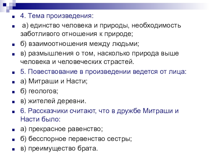 6. Рассказчики считают, что в дружбе Митраши и Насти было: