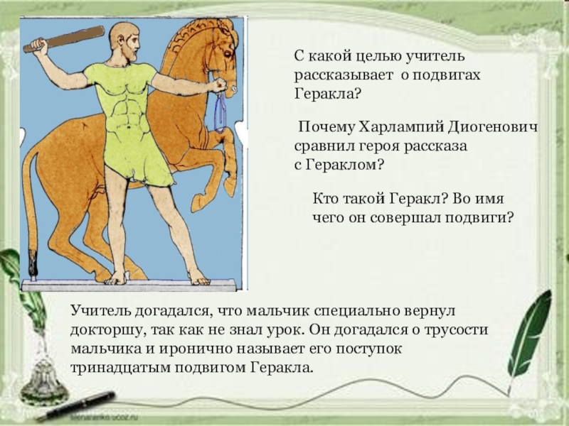 Почему Харлампий Диогенович сравнил героя рассказа с Гераклом?