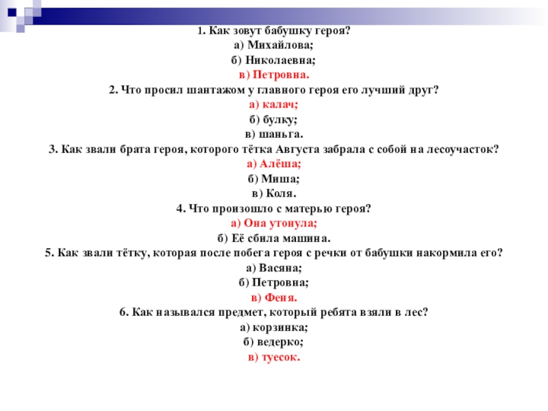 5. Как звали тётку, которая после побега героя с речки от бабушки накормила его?
