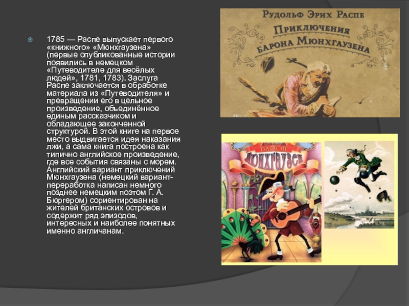 Слайд 41785 — Распе выпускает первого «книжного» «Мюнхгаузена» (первые опубликованные истории появились