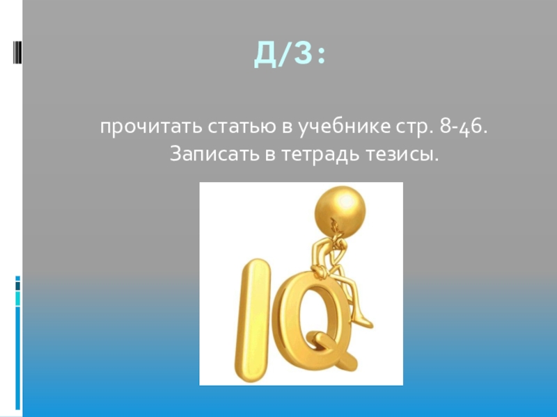 Д/З:прочитать статью в учебнике стр. 8-46. Записать в тетрадь тезисы.