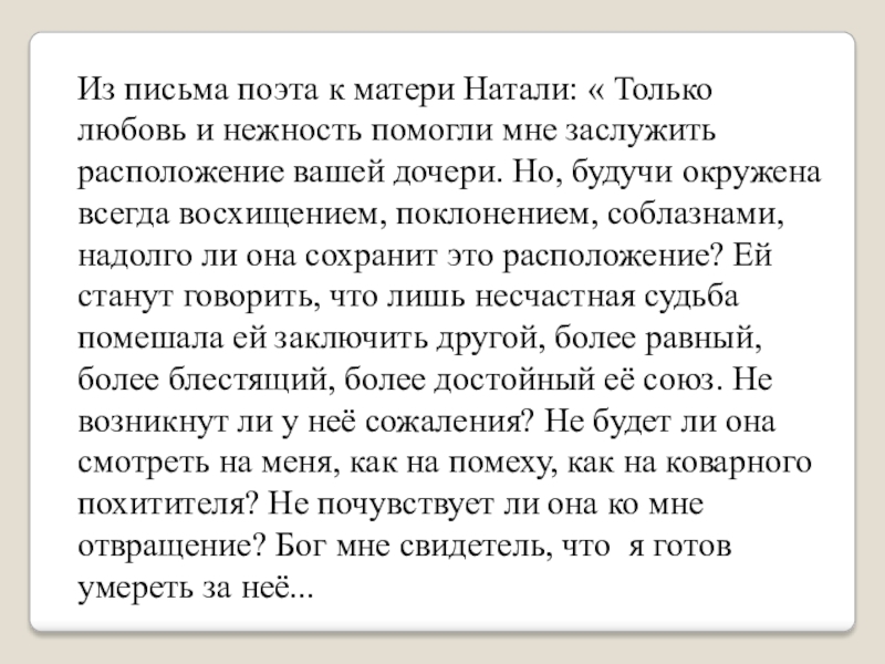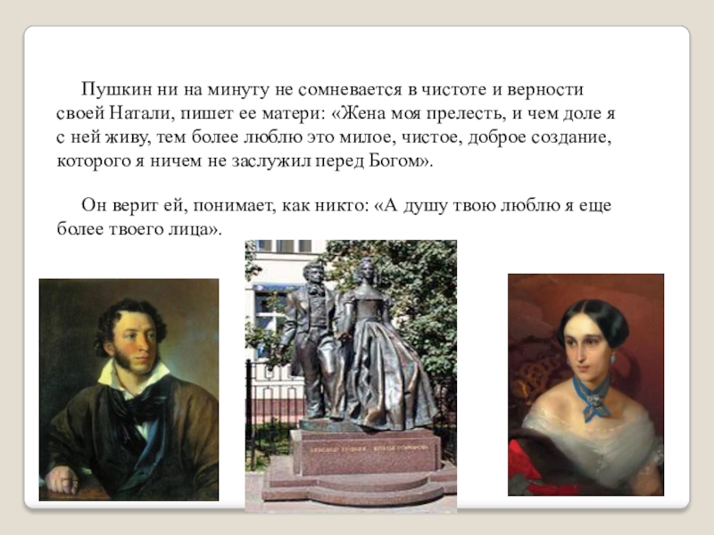 Он верит ей, понимает, как никто: «А душу твою люблю я еще более твоего лица».