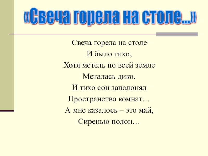 "А ты всё горишь и теплишься, свечечка моя ярая!"