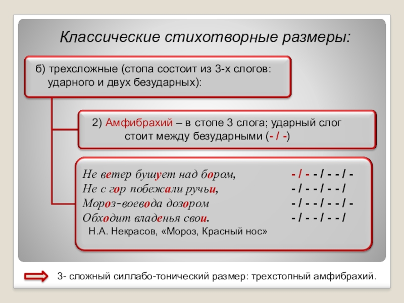 3- сложный силлабо-тонический размер: трехстопный амфибрахий.