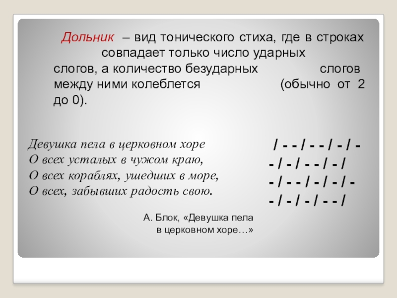 3- сложный силлабо-тонический размер: четырехстопный дактиль.