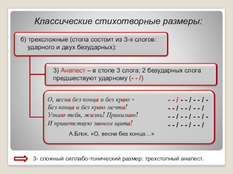 3- сложный силлабо-тонический размер: трехстопный анапест.