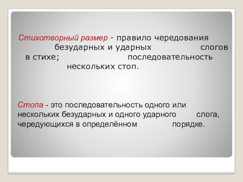 Стопа - это последовательность одного или нескольких безударных и одного ударного слога, чередующихся в определённом порядке.