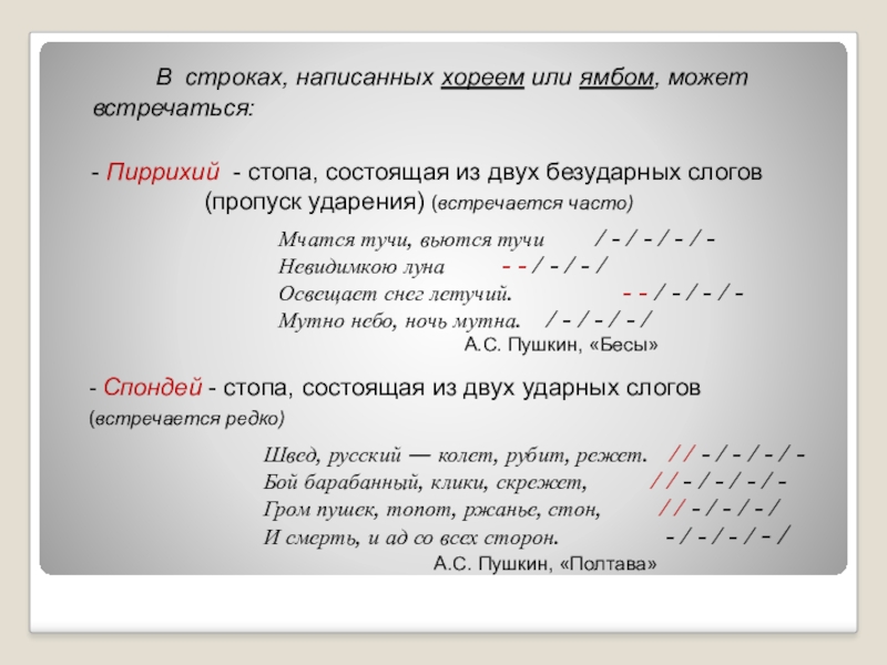 - Спондей - стопа, состоящая из двух ударных слогов (встречается редко)