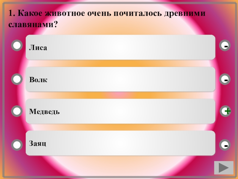 Слайд 301. Какое животное очень почиталось древними славянами?