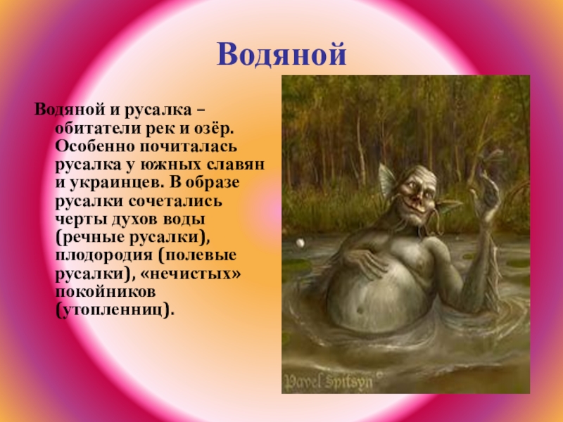 Водяной и русалка – обитатели рек и озёр. Особенно почиталась русалка