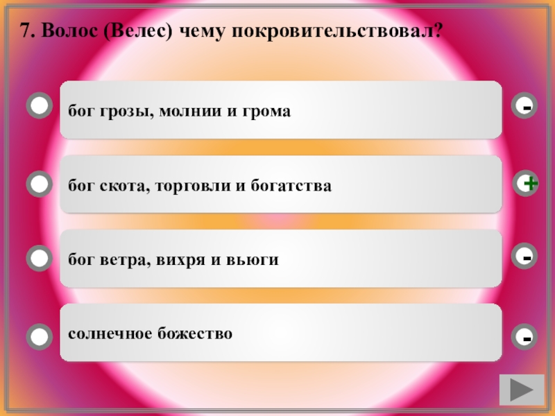 Слайд 367. Волос (Велес) чему покровительствовал?