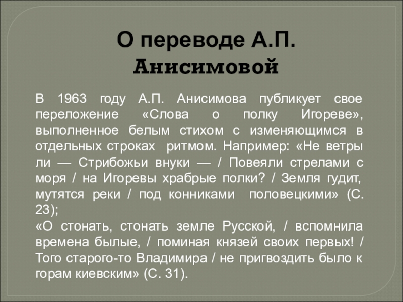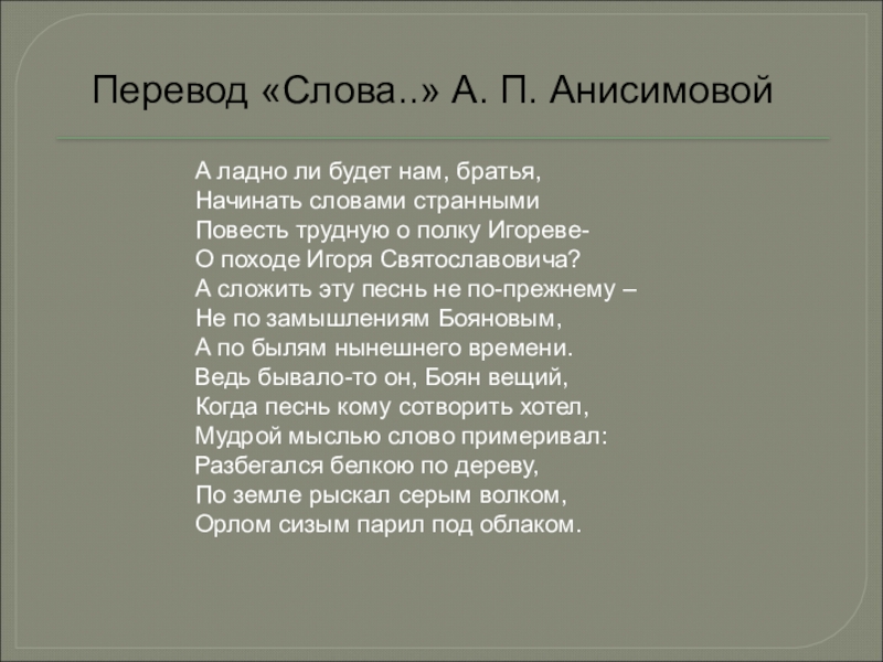 Перевод «Слова..» А. П. Анисимовой