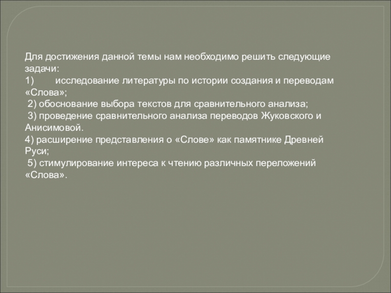Слайд 6Для достижения данной темы нам необходимо решить следующие задачи: