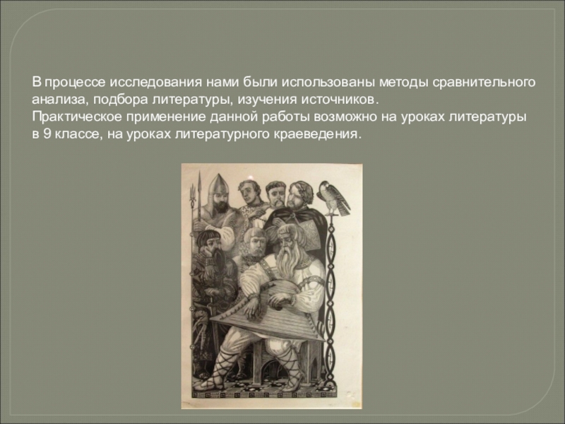 Слайд 7В процессе исследования нами были использованы методы сравнительного анализа, подбора литературы,