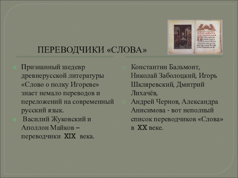 литературы «Слово о полку Игореве» знает немало переводов и переложений на современный русский язык.