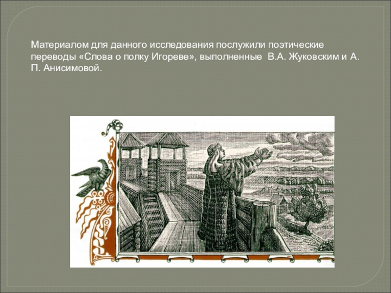 Слайд 4Материалом для данного исследования послужили поэтические переводы «Слова о полку Игореве»,