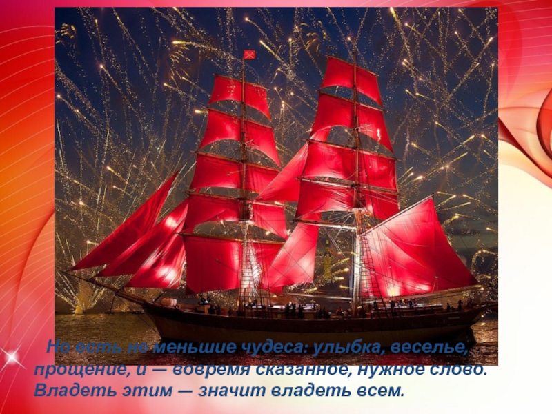 Слайд 20 Но есть не меньшие чудеса: улыбка, веселье, прощение, и